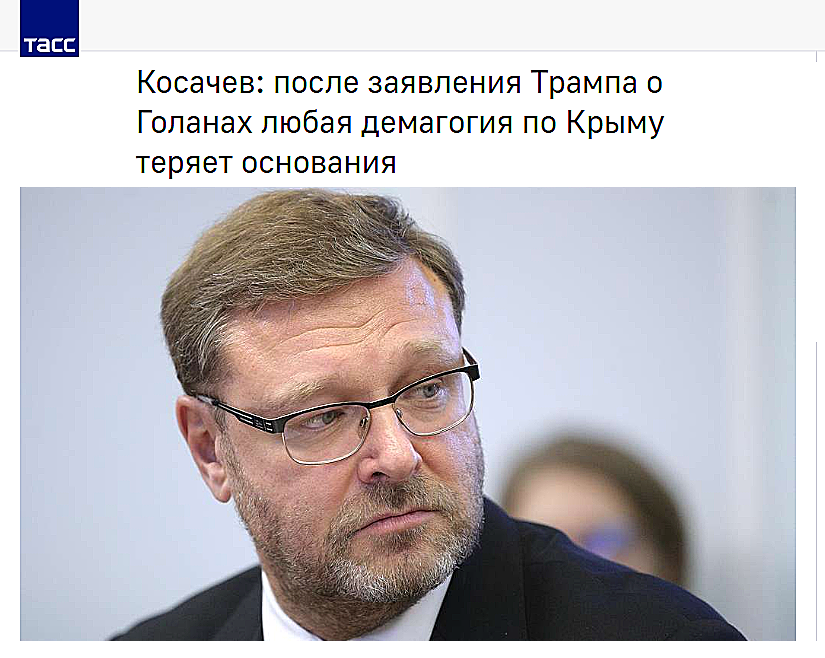 Надо сказать, что разыграно блестяще. А теперь главная козырная карта в этой игре. Сразу после визита Луценко и всего описанного, Трамп написал твит, в котором заявил, что настало время признать полноправный суверенитет Израиля над Голанскими высотами. Трамп подготовил почву для Путина по Крыму. Первым, до кого дошла вся суть происходящего был Майкл Макфол. Он сразу же написал о том, что это подарок Путину. И оказался прав.
